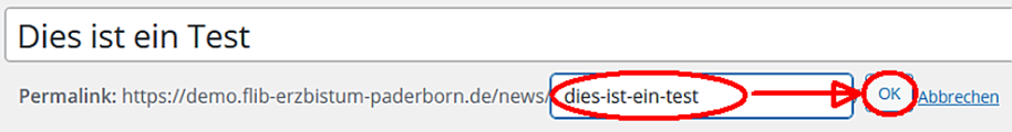 Hinweis: Ein sinnvoller Permalink bezieht sich immer auf den Titel des News-Eintrags. Er enthält keine Großbuchstaben, keine Leerstellen und keine Sonderzeichen.