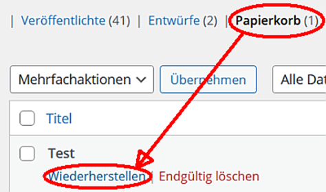 Verschwundene Seiten und Einträge wiederfinden (Papierkorb)