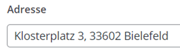 Sie nun bei „Adresse“ Straße Nr., PLZ und Ort des Standorts ein, Beispiel:
