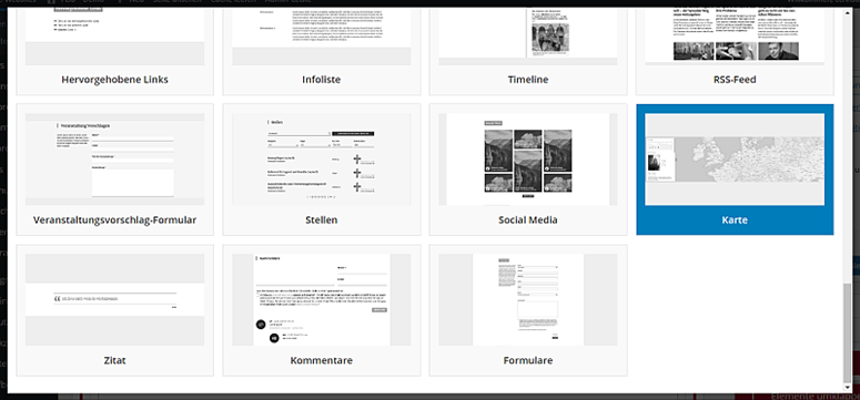 Backend der Seite über das Plus-Icon das Seitenelement „Karte“ aus: