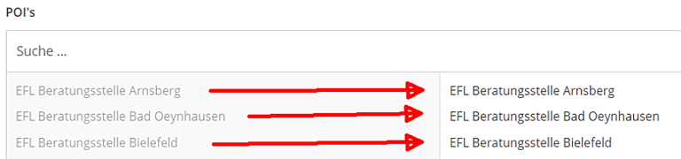 Scrollen Sie dann weiter nach unten, bis Sie die POIs sehen. Durch Klick auf einen POI wird dieser nach rechts kopiert:
