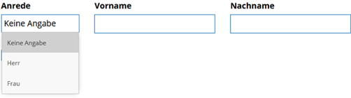 Das Feld „Anrede“ fragt den Namen und das Geschlecht des Formularausfüllers ab.
