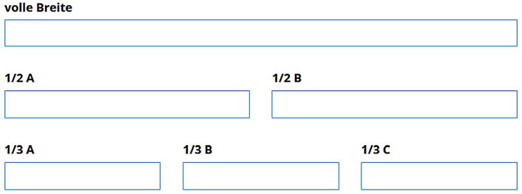Die Angaben (volle Breite), (1/2) und (1/3) beziehen sich auf die Spaltenzahl, die die Formularfelder in der Desktop-Ansicht haben sollen.