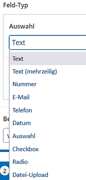In jedem Feld haben Sie die Wahl zwischen verschiedenen Eingabetypen:
