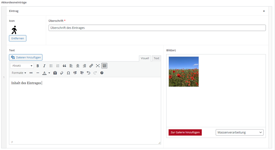 Im Backend legen Sie die einzelnen Einträge des Akkordeons so an: