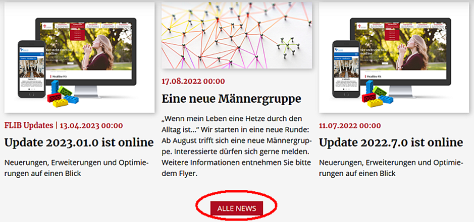 Über den Button unter den News kann der Besucher auf eine Newsseite geführt werden, die alle News anzeigt: