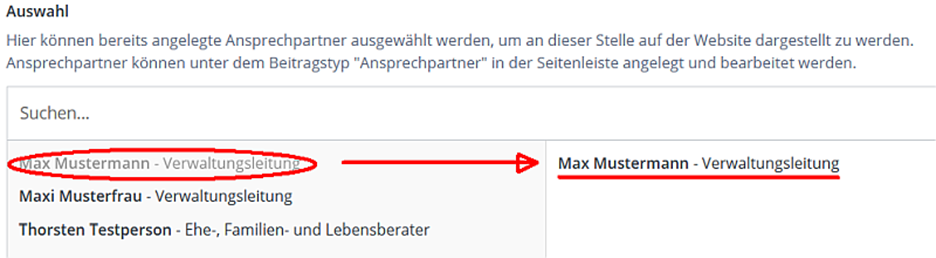 Ebenso können Sie im Seitenelement Ansprechpartner weitere Personen auswählen.