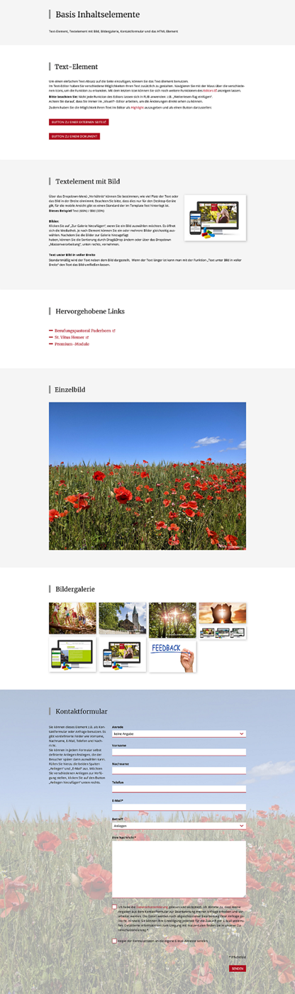 Zusätzlich haben Sie nun auch die Option, ein Bild für den Hintergrund hochzuladen. Wie dies dann im Frontend aussehen könnte, sehen Sie hier unten im Screenshot: Das Kontaktformular hat einen Blumenwiesen-Hintergrund.
