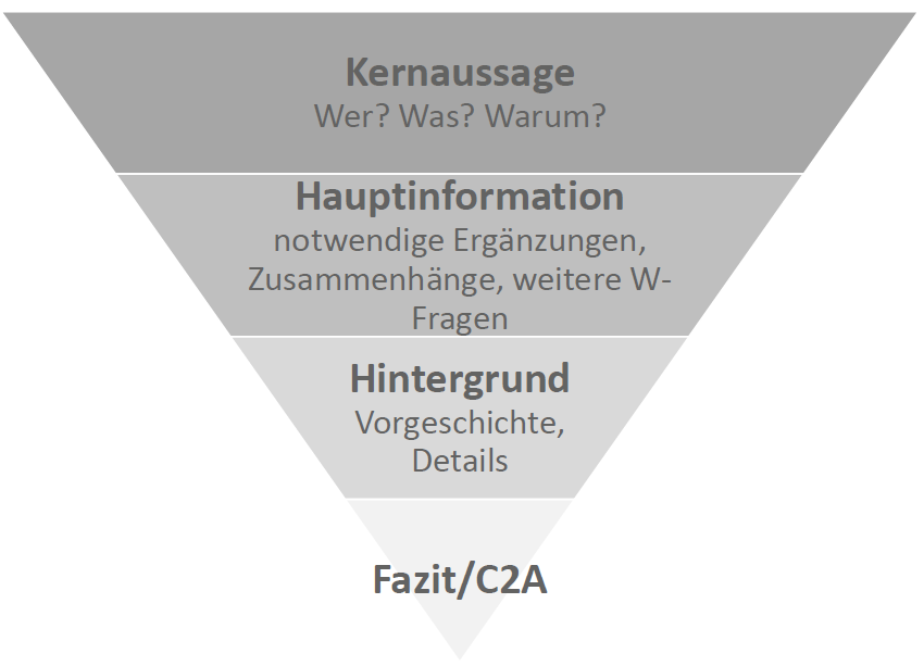 Aufbau, roter Faden, „umgekehrte Pyramide“ (Wichtigstes zuerst)