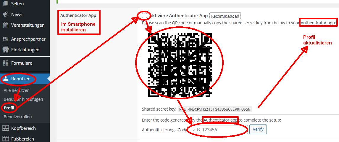 Vielen Dank, dass Sie die 2-Faktor-Authentifizierung aktivieren möchten Das ist immer sicherer als einfach nur ein Passwort; es schützt Ihre FLIB Homepage vor etwaigen Angriffen!